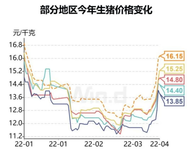 进入4月以来,猪肉价格出现地位反弹。据农业农村部消息,截至4月中旬,全国生猪价格已经连续3周小幅回升,结束了16周连续下跌的趋势,养殖场户亏损有所缓解。