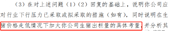 另外还要求其说明在生猪价格走低情况下加大生猪出栏量的具体考量,并分析影响。