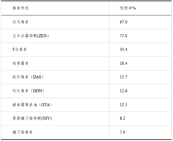 表2 酵母细胞壁对霉菌毒素的吸附能力