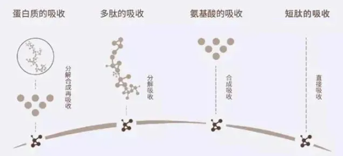 小肽能以完整形式被机体吸收进入循环系统,从而被组织利用来合成蛋白质或直接成为生理活性物质。小肽不仅能被小肠粘膜吸收利用,而目合成分子蛋白的速度远远高千氛基酸。大量试验证明,血滴循环中的小肽能直接参与组织蛋白质的合成。此外,动物以小肽形式作为氨源时,整体蛋白质沉积高于相应的游离氨基酸日粮或完整蛋白质日粮。陈宝江