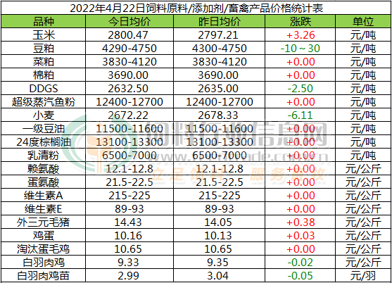 玉米价格继续高位调整。小麦价格飙升,俄乌冲突带动国际粮价上涨,进口玉米成本价不断高升,国内市场玉米流通总量偏低,众多因素均对国内现货价格构成利好。4月份,中国养殖市场将继续缓慢恢复,玉米饲用需求环比将继续增长,新季玉米库存继续下降。新冠疫情在4月份大多数时候,将继续影响北方玉米主产区粮源外运。预计4月下半月期间,国内主产区玉米价格将总体稳中略偏强走势为主,价格实质性下跌难度极大。