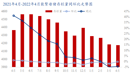 图1 2021年4月-2022年4月能繁母猪存栏量同环比走势图