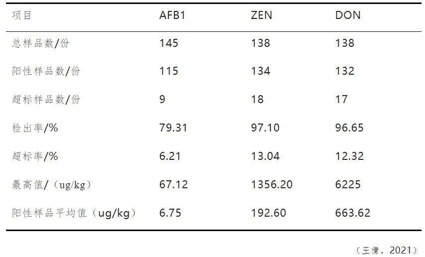 表1 2020年收检配合365bet亚洲官网网址_365bet在线体育投注_365上怎么买比分 霉菌毒素检测结果