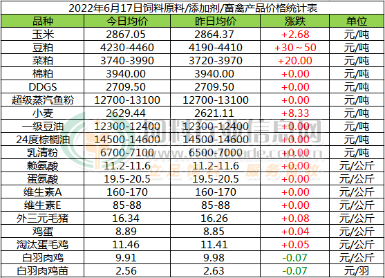 DDGS稳定。进入6月份,玉米酒精企业传统检修启动后,DDGS现货供应进一步收紧,玉米价格维持高位,养殖刚需提振,企业挺价意愿持续偏强,提振 DDGS高位坚挺运行。
