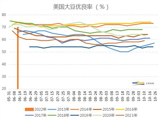最新公布的美国CPI显示,美国通胀率达到40年高点后美元创下二十年来的新高,美联储为遏制通货膨胀飙升储将联邦基准利率提高了75基点,且后期美联储仍有加息可能。最新作物周度生长报告数据显示,截至6月12日,在占到全国大豆播种面积96%的18个州美国大豆播种进度为88%,虽然仍低于去年同期的93%但是已经追平五年同期均值为88%,加之本年度大豆生长优良率首次公布就达70%符合市场预估,使得大豆期价承压。且最新的美国全国油籽加工商协会(NOPA) 公布的月度数据显示,2022年5月份该协会会员企业加工大豆1.711亿蒲,高于4月份的1.69788亿蒲,比2021年5月份的1.63521亿蒲提高4.6%,但是低于报告出台前分析师们平均预期的1.654亿蒲式耳到1.75亿蒲式耳。诸多利空因素叠加后施压美盘大豆,期价出现明显的回落走势。