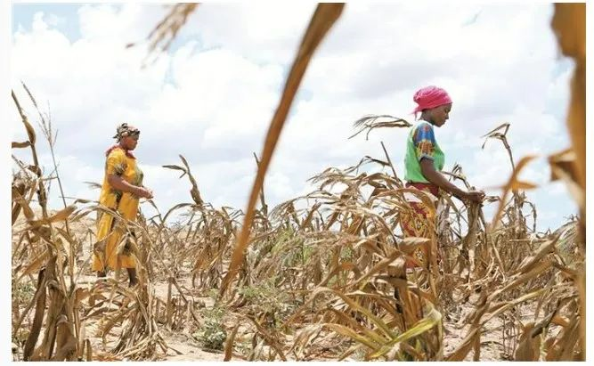 目前,非洲正遭遇严重旱灾,超1300万人面临严重粮食危机。位于肯尼亚东部的基利菲郡正在经历这场旱灾。图为村民扎瓦迪(右)和卡罗琳在肯尼亚基利菲枯萎的玉米地里试图找到玉米。新华社发