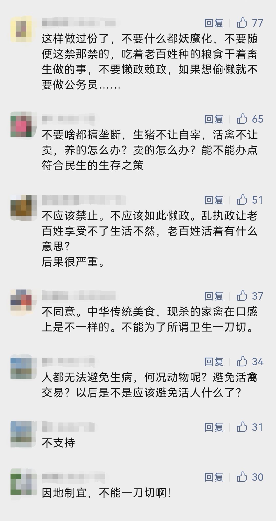 另外,许多网友也认为不能盲目禁止活禽交易: